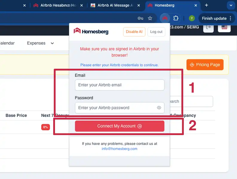Step 9 – After entering your Airbnb account details in the extension, click the “Connect My Account” button to start the connection.